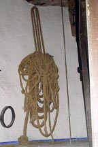retorcida. Tenían varias. Solían compartir los molineros de un mismo pueblo una maroma grande en su longitud: unos 60 metros. La utilizaban para hacer obras o para cambiar el palo de gobierno. La que compartían los molineros de Madridejos se perdió (lo que no es seguro) cuando el molino del tío José (estaba junto al del Tío César). La que vemos en la fotografía se encuentra en el molino de Consuegra (Sancho) y procede del molino de la Magdalena de Madridejos.